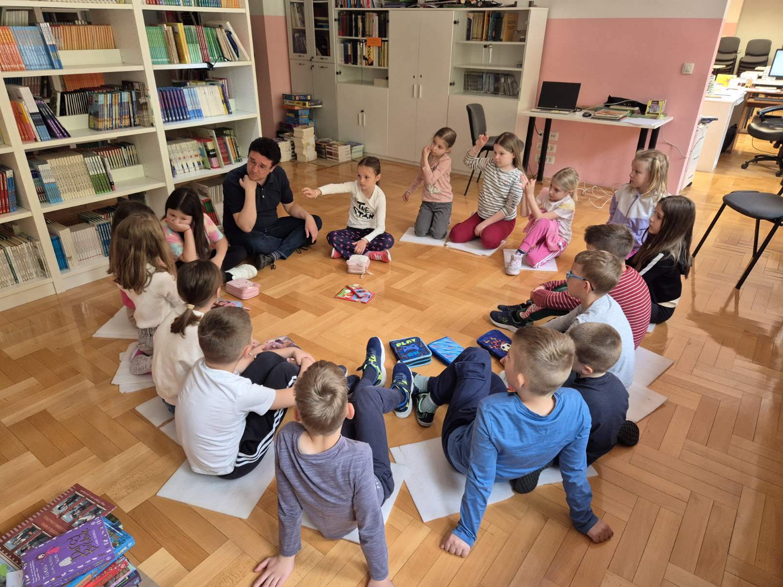 U prvom dijelu druženja prisjetili smo se pravila ponašanja u knjižnici, povezujući ih s razrednim pravilima. Također smo ponovili postupke posudbe knjiga i pravilan način ophođenja s njima.