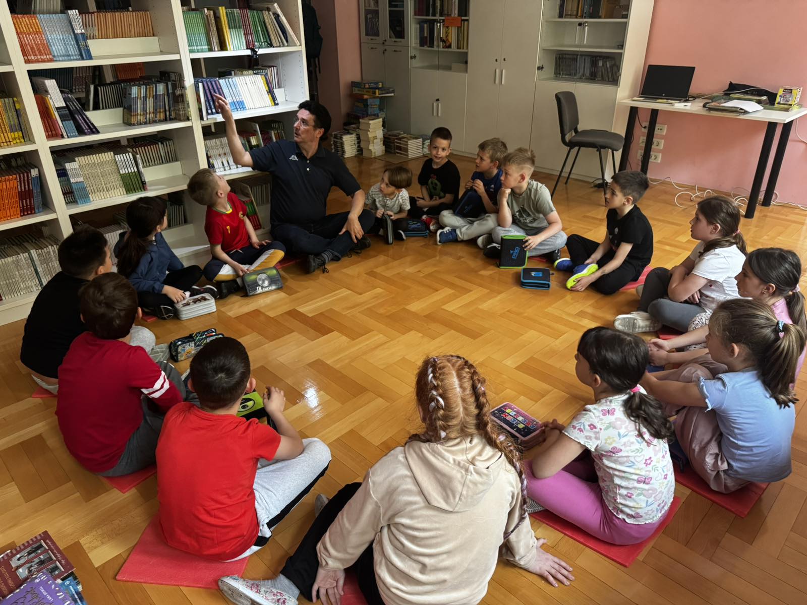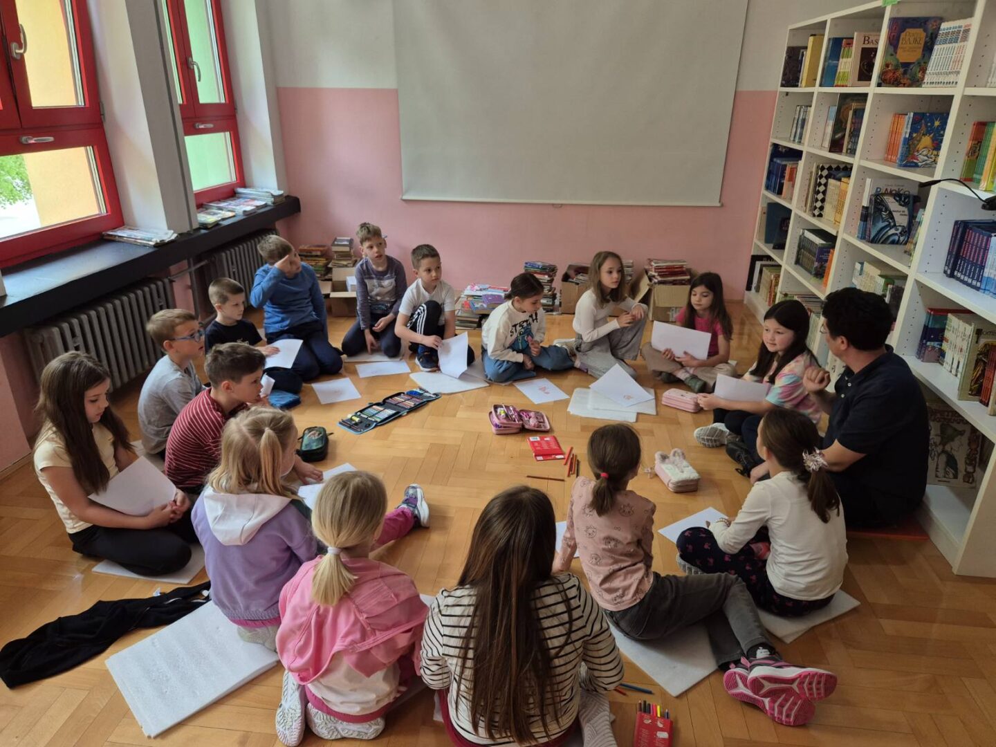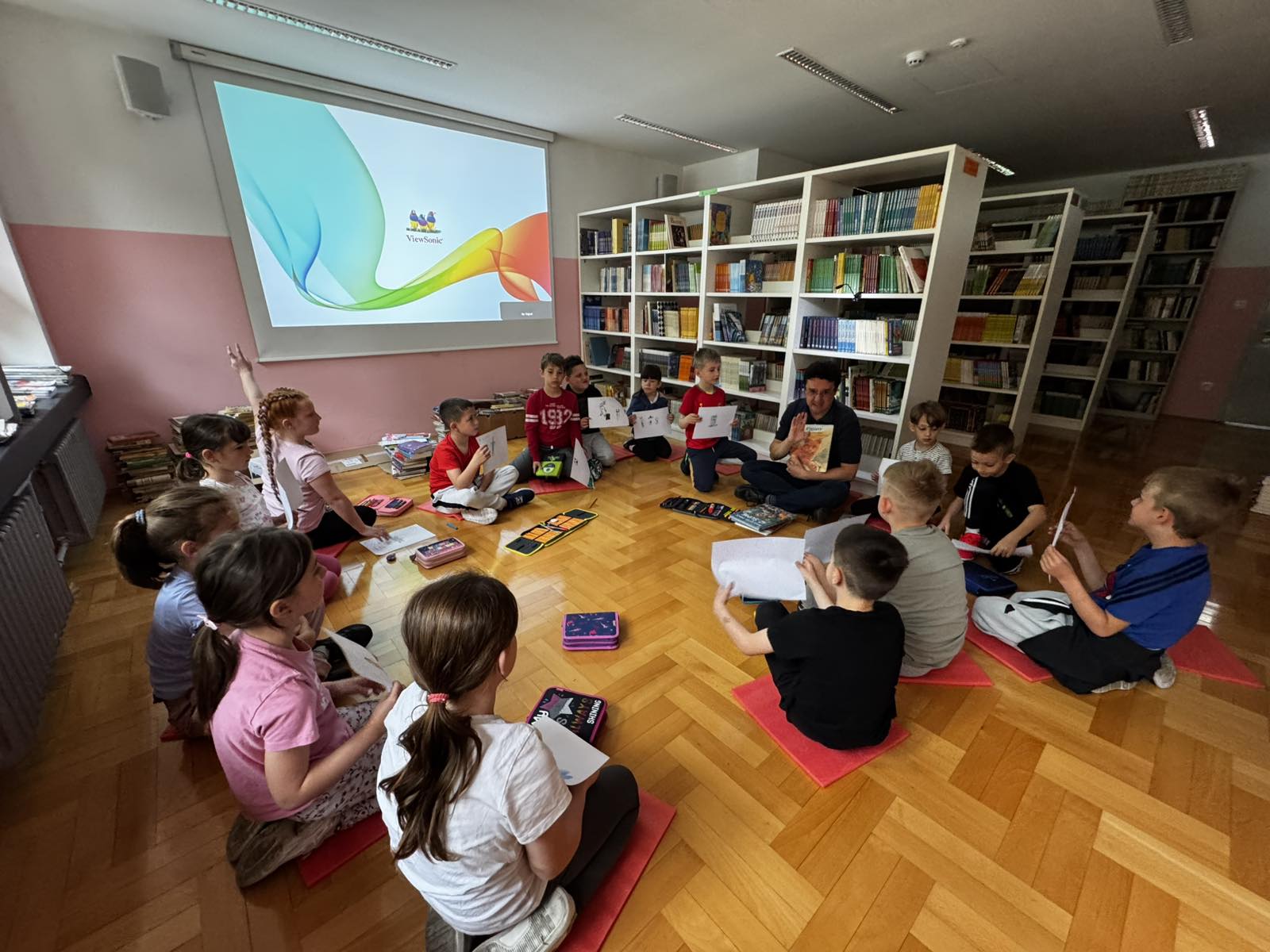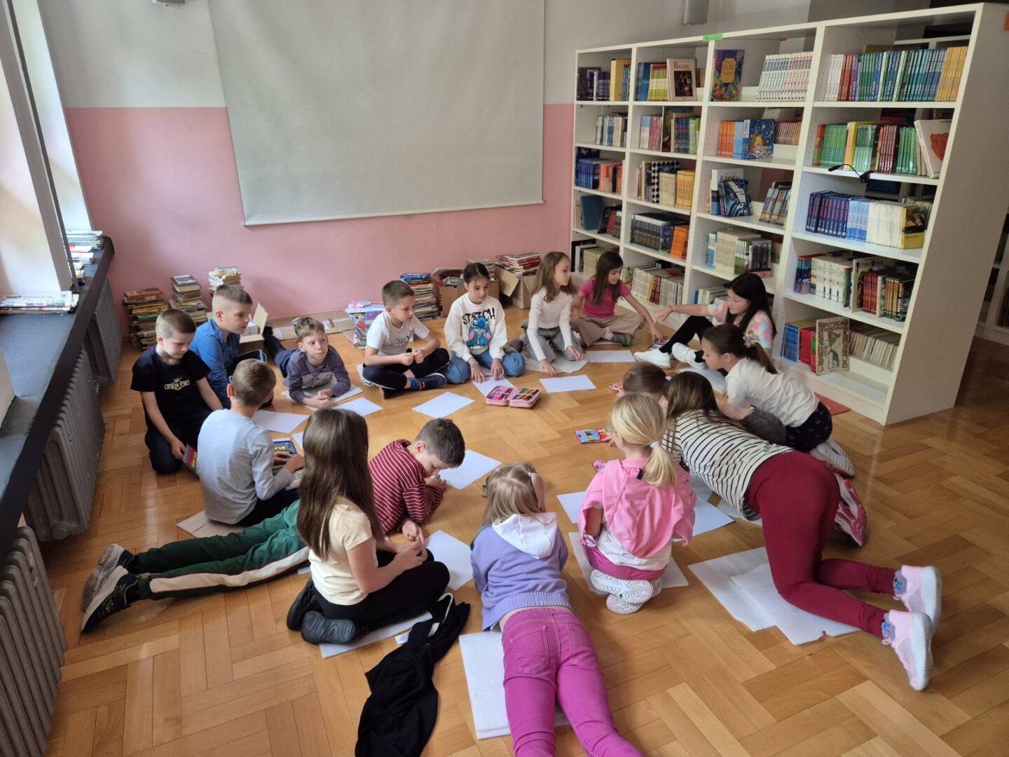 učiteljicama, Sabinom i Veronikom. Učenici su s knjižničarom podijelili svoja iskustva vezana uz čitanje i knjige.