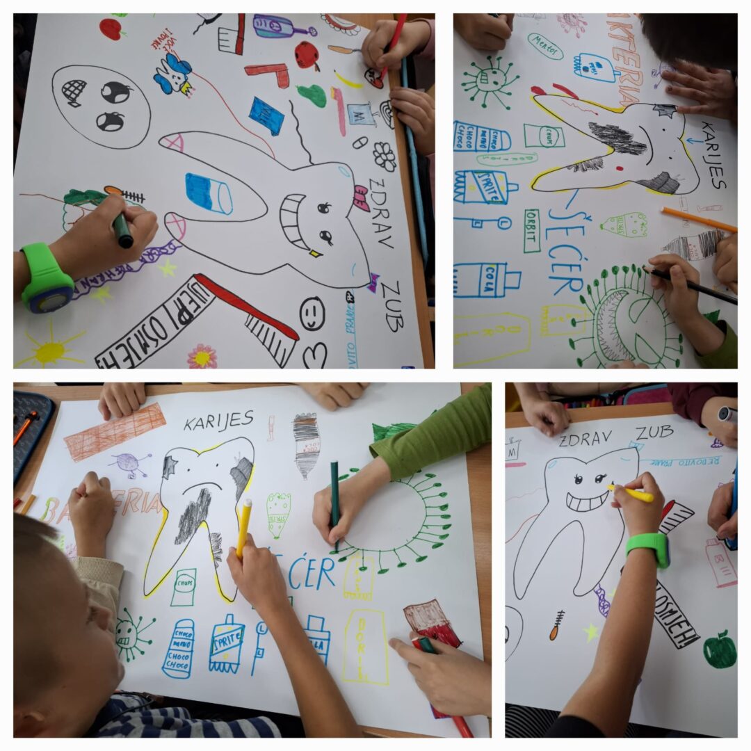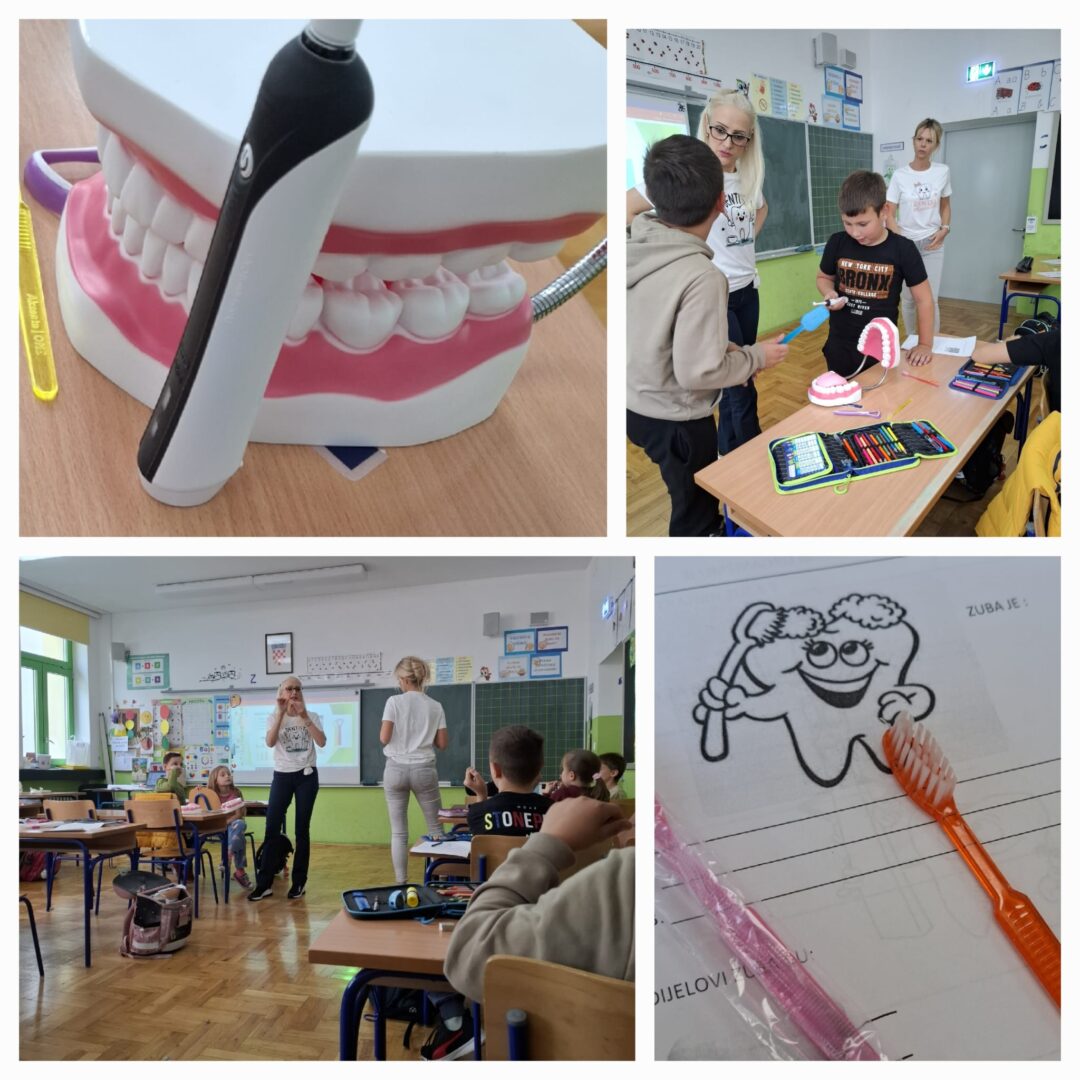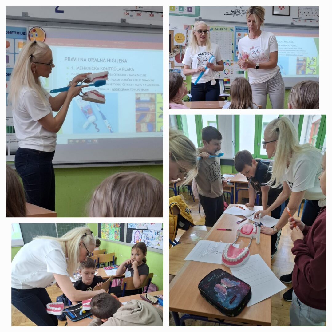 Kroz druženje sa stomatologinjom na zanimljiv i edukativan način, djeci je pokazana važnost redovite higijene zubi i posjeta zubaru. Djeca su slušala o oralnoj higijeni, pravilnom pranju zubića, pravilnom držanju četkice prilikom pranja, koliko dugo četkati zube, kako nastaje karijes. Razgovarali smo o oralnoj higijeni, o mliječnim i trajnim zubićima, zdravoj i nezdravoj hrani za zube. Svi učenici su aktivno sudjelovali u razgovoru, vodili bilješke, pisali, crtali i sudjelovali u praktičnom radu.