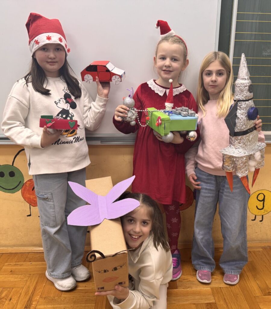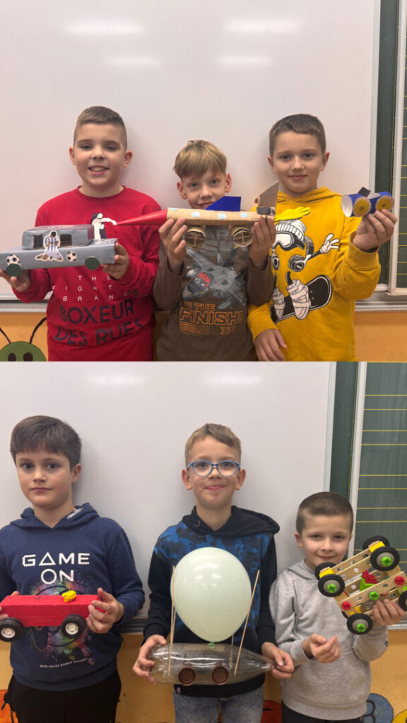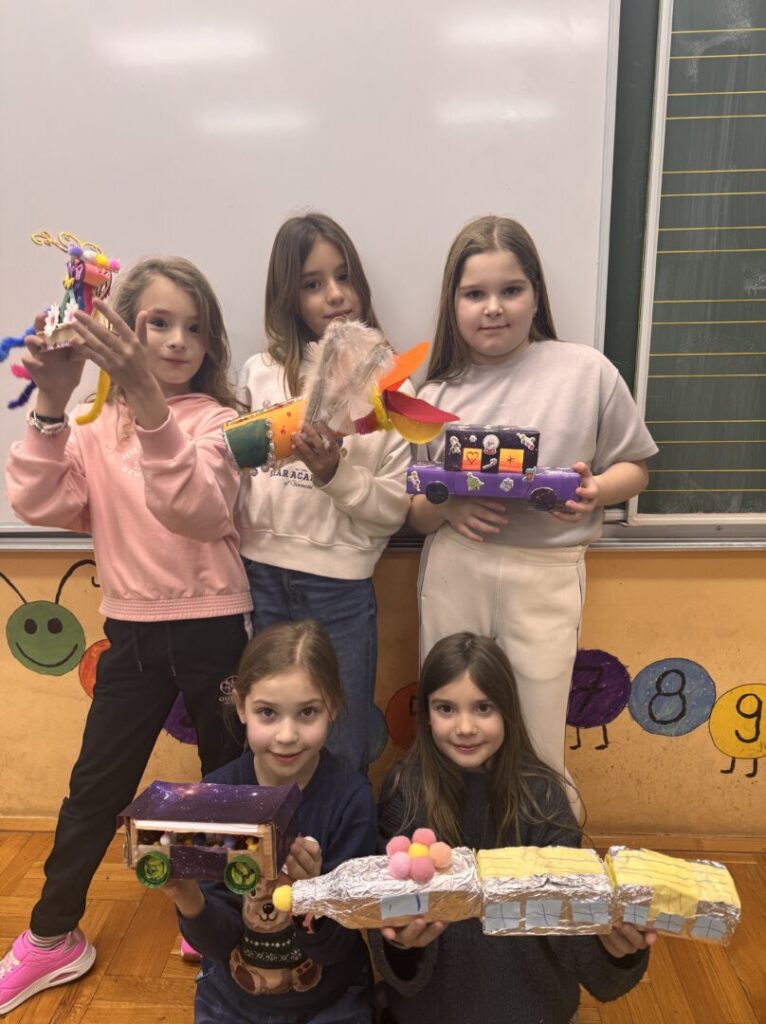 Na kraju, kada su sve naučili i uživo vidjeli, proradila je mašta pa su pomoću kutija, čepova, boca, kod kuće, izradili vlastito prijevozno sredstvo i s njime upoznali ostatak razreda objašnjavajući kojoj vrsti prometa prijevozno sredstvo pripada i kako